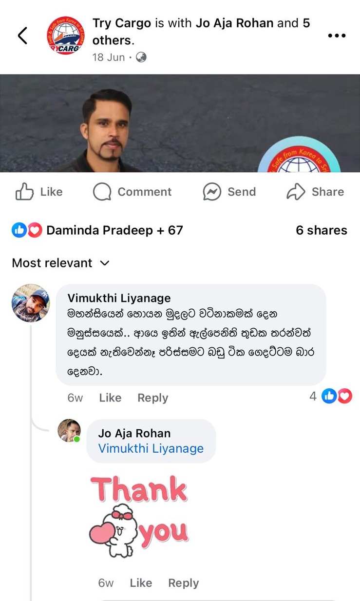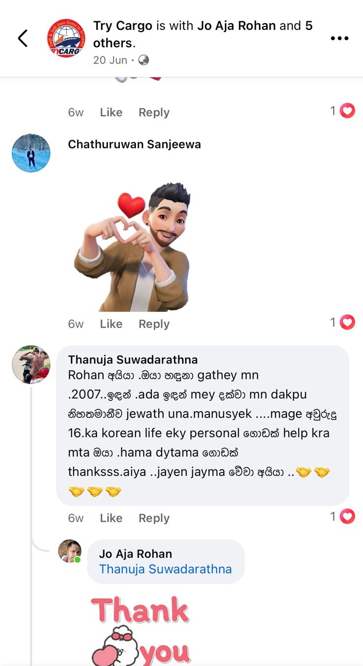 About us We are the first and second cargo agency in Korea to ship cargo from Korea to Sri Lanka for over ten years. We have worked to provide you with a very high quality service by delivering your goods safely to homes in Sri Lanka under a very high quality service. We are ready to do so in the future, the journey we have come for you so far is a very difficult journey full of difficult responsibilities. We are not just a profit making business but a service provider for you. In some cases, we have spent our personal money on your behalf and released your goods to you.